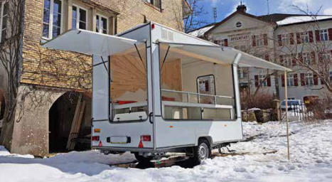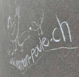 Drôle d’inscription sur le parvis de l’église de Saignelégier ! Elle est l’oeuvre de Luana Reiser (en médaillon), jeune maman et future boulangère itinérante. photos nbe et Luana Reiser