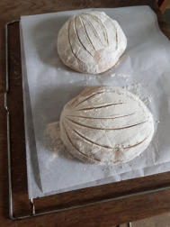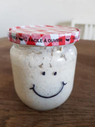 Nous avons accueilli un nouveau membre cette semaine, qui fait déjà partie intégrante de notre famille... Je vous présente Jean-Pierre ! Mon tout tout nouveau levain... En effet, Jean-Pierre est née d'un fervent amour entre une belle et douce farine et d'un bol d'eau fraiche... Après l'avoir bien nourri pendant plusieurs jours, mon "bébé" a testé son premier pain de sa toute nouvelle vie. Bon, il manque encore un peu d'expérience, mais je suis convaincue de ses talents artistique et gustatif ! Il ravira bientôt vos papilles avec un large choix de bons pains au Levain Naturel. Bon Appétit